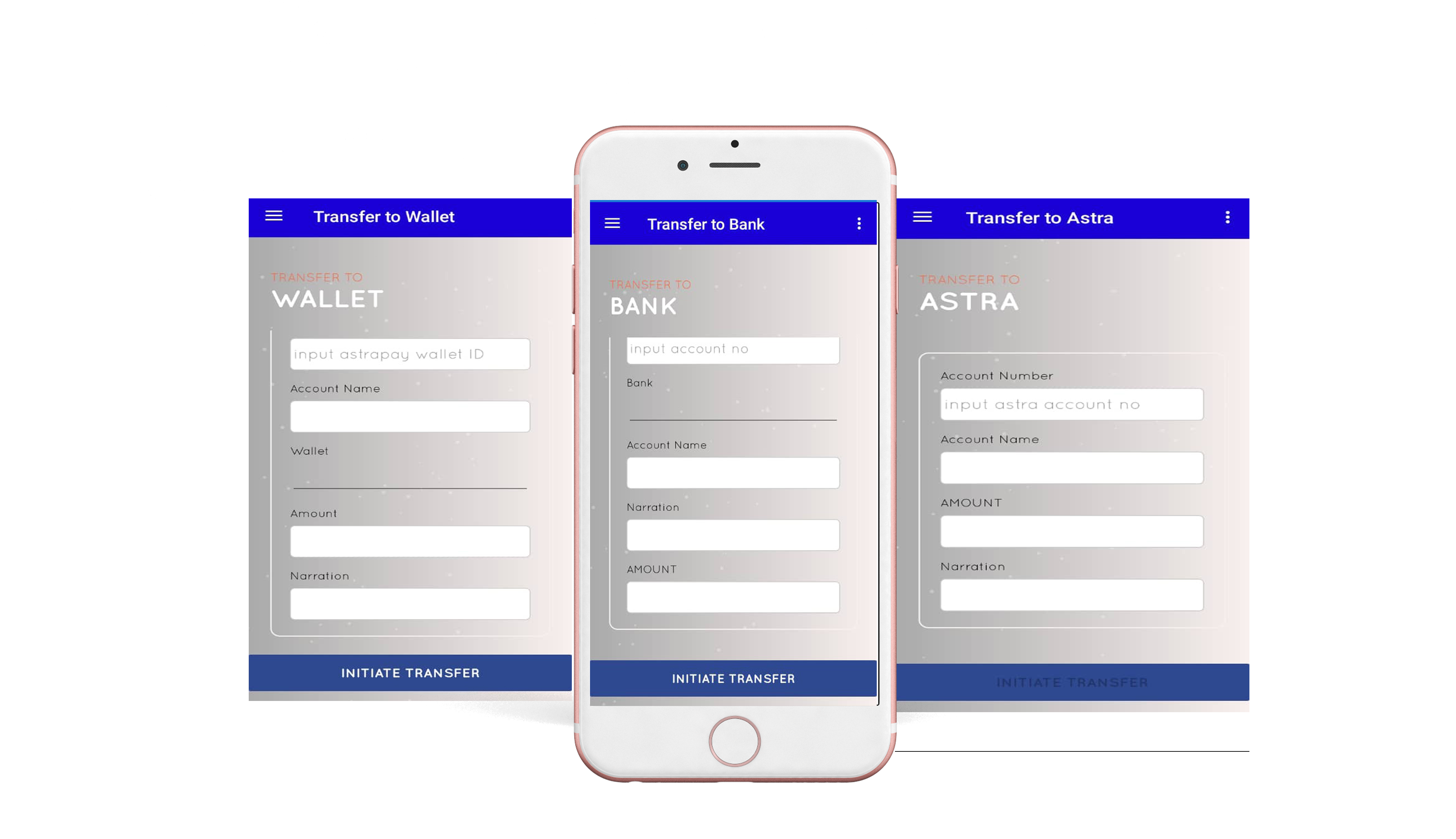 - STEP 1: Open your AstraPay App, on the menu bar, click on the "Transfer" icon, and select the transfer type.